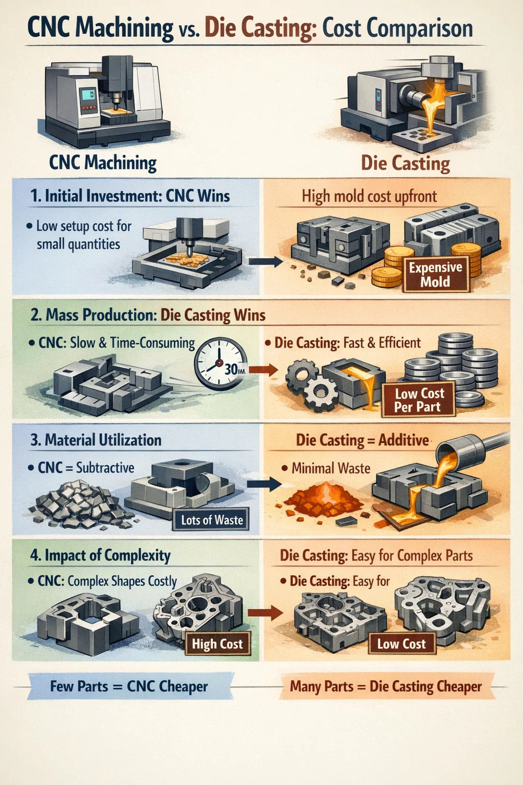 Pokud jde o to, zda je levnější tlakové lití nebo CNC obrábění, odpověď ve skutečnosti závisí na tom, kolik dílů plánujete vyrobit.