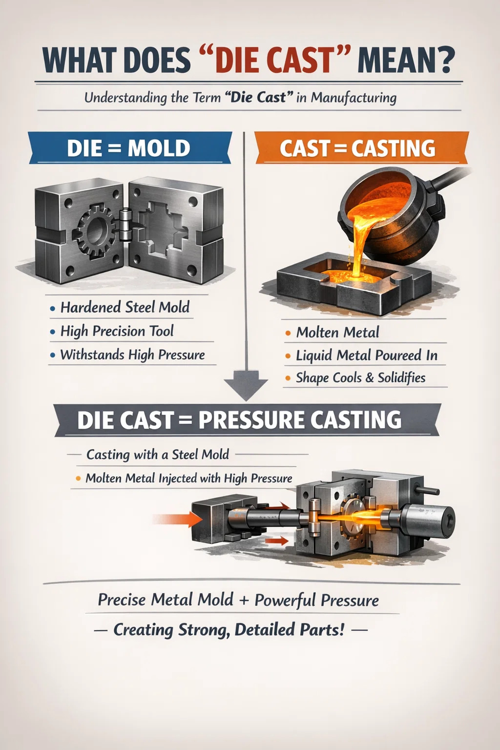 Spojením těchto dvou slov do „odlitku“ je hlavní význam: tlakové lití pomocí přesné kovové formy.